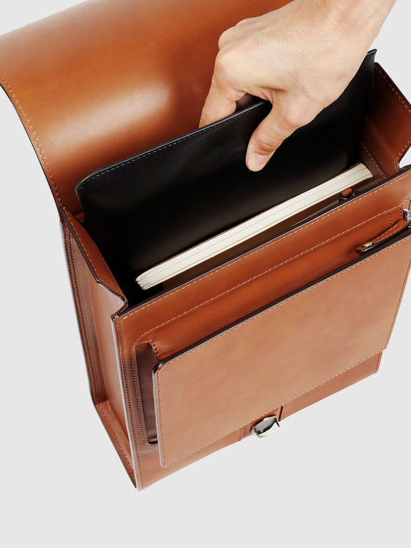 メイン収納は、A4クリアファイルやノートPC が縦に入るサイズ。