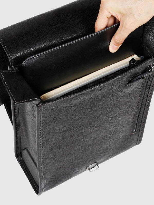メイン収納は、A4クリアファイルやノートPCが縦に入るサイズ。