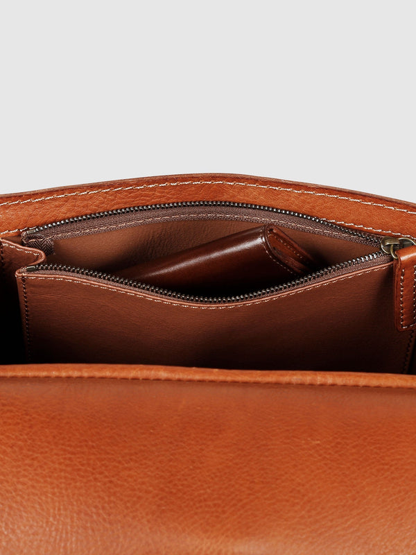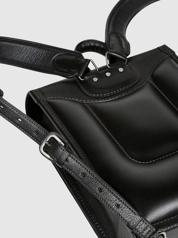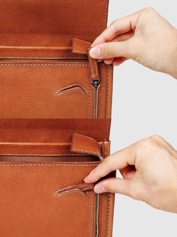 ショルダーベルトは8段階で長さ調整が可能。背中は通気性に優れる「ソフト牛革」で仕立てました。また、中にクッション材を内蔵しているため、肩に食い込みにくくなっています。
